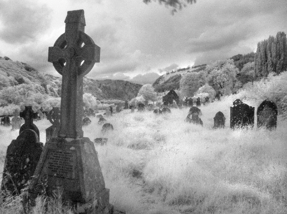 In the summer of 2015, I was invited to teach a printing workshop in Dublin, Ireland. I had never been to the Emerald Isle before and our host took us on some wonderful sightseeing jaunts before the teaching began. One of the stops was Glendalough, the site of a 6th-century monastic settlement featuring some ancient stone crosses. I had been experimenting with infrared before this trip and loved it. When I saw the grasses, I knew they would be magical in infrared, and they were!